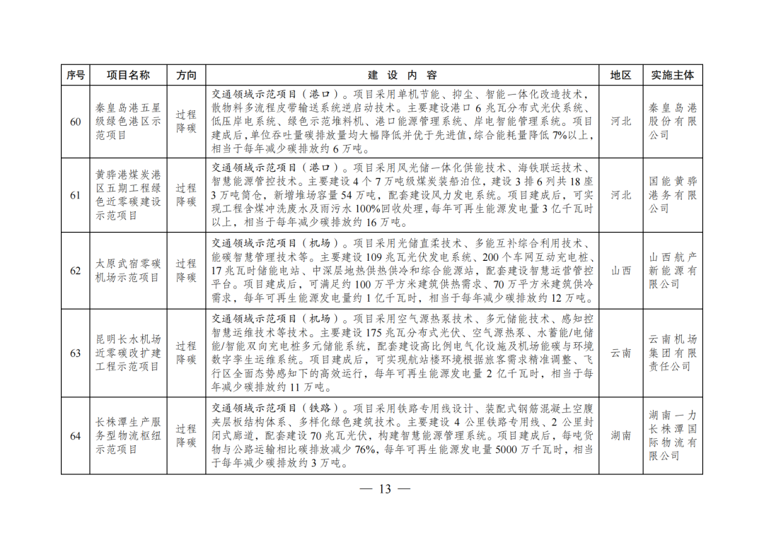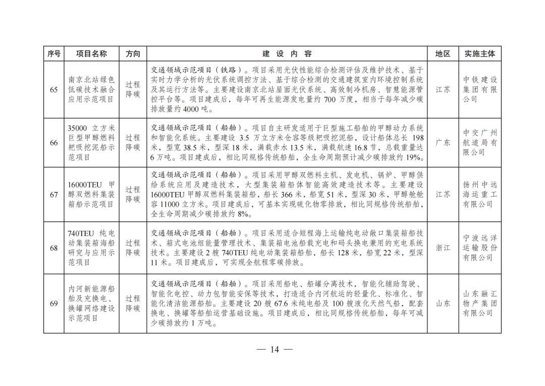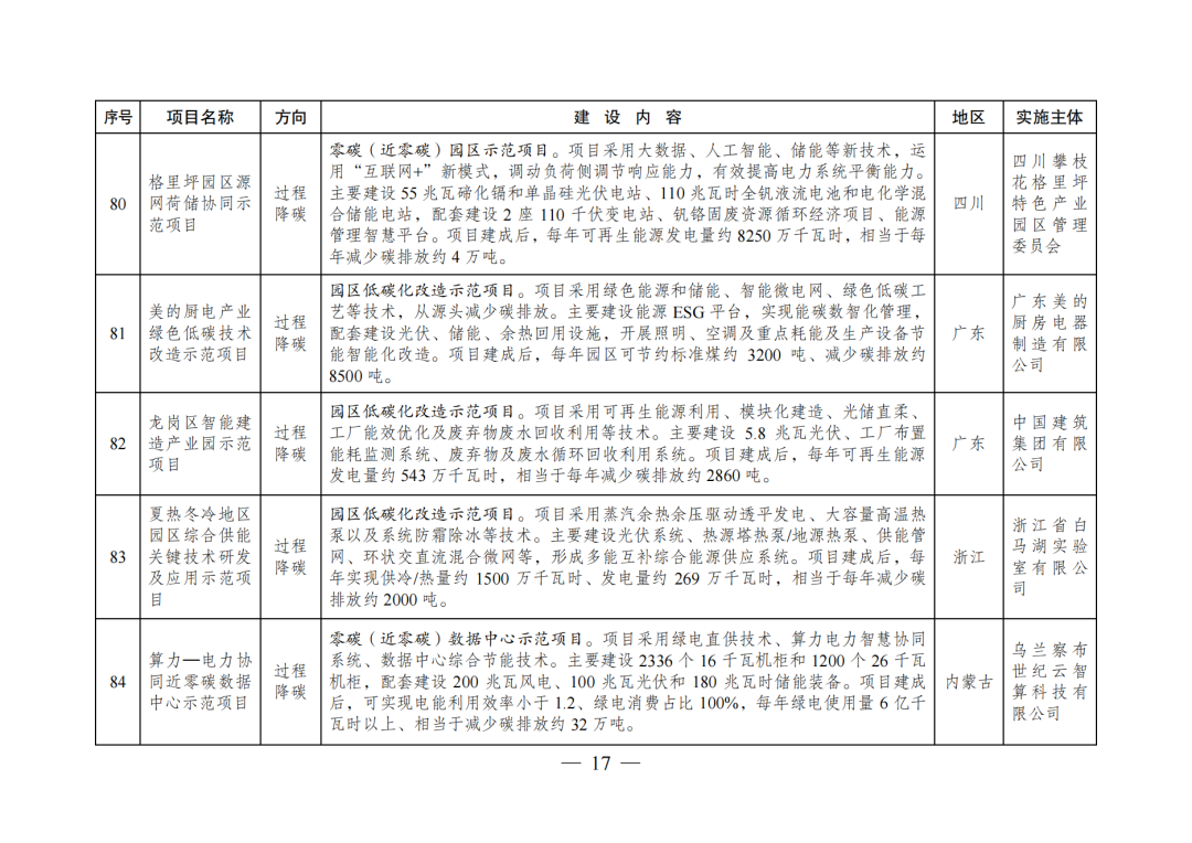绿色低碳先进技术示范项目清单(第二批)(公开征求意见稿)